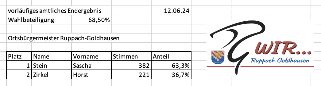 Amtliches Wahlergebnis Ortsgemeinderat und Ortsbürgermeister